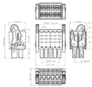 PCB universal screw terminal blocks, this typical feature of the screw connection system is characterized by the easy connection and extremely high contact strengths. Provide the wire size from 0.08mm² to 35mm², Available with different pitches from 2.54mm to 15.0mm. Plug-in terminal blocks, provide the wire size from 0.08mm² to 16mm², Available with different pitches from 2.5mm to 10.16mm, Choosing insert direction, contact direction, Plug-in direction according to requests. PCB Spring terminal blocks, available with two connection methods cage clamp contact and dish clamp contact. Provide the wire size from 0.08mm² to 16mm², Available with different pitches from 2.5mm to 10.16mm. It can be used instead of printed circuit universal screw terminal blocks, more flexible. Use high-elastic stel melting with perfect metallic bending technology, thus the spring clamp can held tightly without loosen. The features of the design can match with all kinds of accessories, anti-vibration, free maintenance and high reliability. The design can match with all kinds of accessories. We offer coding to prevent from mistaken wiring. The strain relief design makes the plug be secured in the socket without coming apart from the socket by accident. Pitch: 2.5mm up to 7.62mm, Pole sizes: 2P up to 24P. Feed through terminal blocks, connecting with two conductors easily and credibility, Provide the wire size from 0.5mm² to 16mm², Available with different pitches from 8.2mm to 14.5mm, Available for with fuse and without fuse. Barrier terminal blocks, connecting easily, provide the size from 0.5mm² to 50 mm², Available with different pitches from 6.35mm to 27.0mm, with cover and without cover. The product is designed in accordance with IEC 60998, IEC 60947, UL1059, CSA C22.2 NO.158 standards.