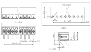 PCB universal screw terminal blocks, this typical feature of the screw connection system is characterized by the easy connection and extremely high contact strengths. Provide the wire size from 0.08mm² to 35mm², Available with different pitches from 2.54mm to 15.0mm. Plug-in terminal blocks, provide the wire size from 0.08mm² to 16mm², Available with different pitches from 2.5mm to 10.16mm, Choosing insert direction, contact direction, Plug-in direction according to requests. PCB Spring terminal blocks, available with two connection methods cage clamp contact and dish clamp contact. Provide the wire size from 0.08mm² to 16mm², Available with different pitches from 2.5mm to 10.16mm. It can be used instead of printed circuit universal screw terminal blocks, more flexible. Use high-elastic stel melting with perfect metallic bending technology, thus the spring clamp can held tightly without loosen. The features of the design can match with all kinds of accessories, anti-vibration, free maintenance and high reliability. The design can match with all kinds of accessories. We offer coding to prevent from mistaken wiring. The strain relief design makes the plug be secured in the socket without coming apart from the socket by accident. Pitch: 2.5mm up to 7.62mm, Pole sizes: 2P up to 24P. Feed through terminal blocks, connecting with two conductors easily and credibility, Provide the wire size from 0.5mm² to 16mm², Available with different pitches from 8.2mm to 14.5mm, Available for with fuse and without fuse. Barrier terminal blocks, connecting easily, provide the size from 0.5mm² to 50 mm², Available with different pitches from 6.35mm to 27.0mm, with cover and without cover. The product is designed in accordance with IEC 60998, IEC 60947, UL1059, CSA C22.2 NO.158 standards.